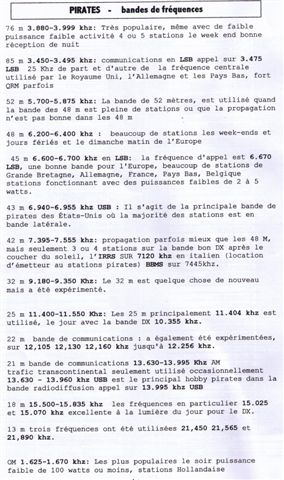 Pirates: les bandes fréquentées; si vous voulez faire joujou le dimanche matin, vous serez récompensés par une QSL inhabituelle. Cliquer ici pour avoir les frequences PIRATES