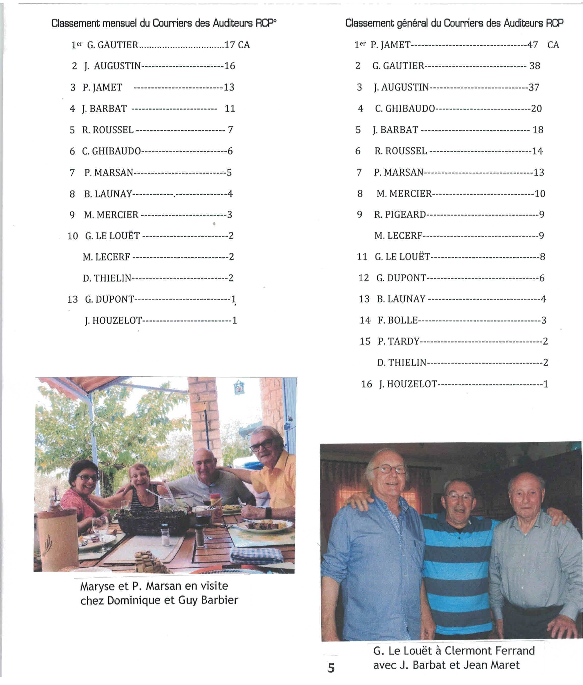 Classement du concours du courrier des auditeurs.