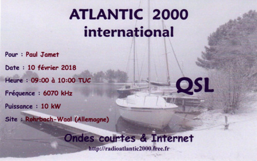 Pour obtenir une carte QSL, adressez un rapport d’écoute détaillé à Atlantic2000