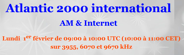 A l’occasion du 10ème anniversaire de Channel292, lundi 1er février 2021, Atlantic200 sera en onde de 9h00 à 10h00 TUC sur trois fréquences : 3955 kHz, 6070 hKz et 9670 kHz :
