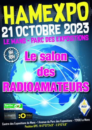 L’Association des RadioAmateurs de la Sarthe [ARAS-ref 72] organise chaque année le salon radioamateur HAMEXPO au parc des expositions de la ville du Mans La prochaine édition de HAMEXPO se tiendra le samedi 21 octobre 2023 de 9h à 18h. Entrée gratuite pour les étudiants.