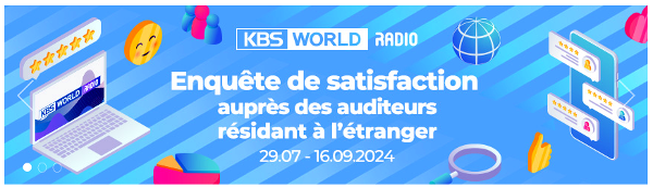 Comme chaque année, KBS World Radio procède à une enquête de satisfaction auprès de ses auditeurs. Que vous soyez auditeur régulier ou occasionnel, il est important de répondre à cette enquête. Beaucoup de stations internationales ont disparu des ondes au cours des 20 dernières années ! Les stations qui diffusent un programme en langue française…