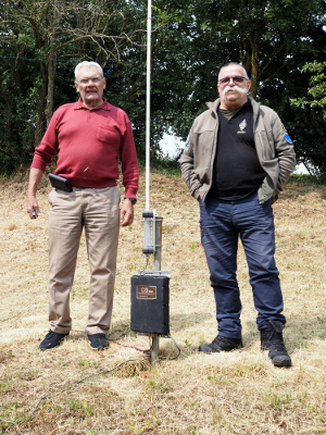 Philippe F6CYZ et Didier F1PPH au pied de l‘antenne VB500 (1) – Photo P. Jamet Association des Radioamateurs de la Sarthe