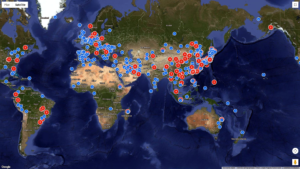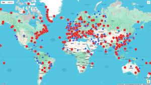 Fonctionnalités clés : seules les stations en cours d’émission apparaissent à condition que leurs coordonnées figurent dans les bases . Un seul marqueur pour plusieurs stations utilisant le même site émetteur. L’utilisateur a le choix entre deux bases de données [EiBi (très complète, >10 000 entrées) ou Aoki (riche en stations asiatiques, ~5 200 entrées)] et deux modes d’affichage [Plan ou satellite]. La fonction zoom de Google Maps est disponible.